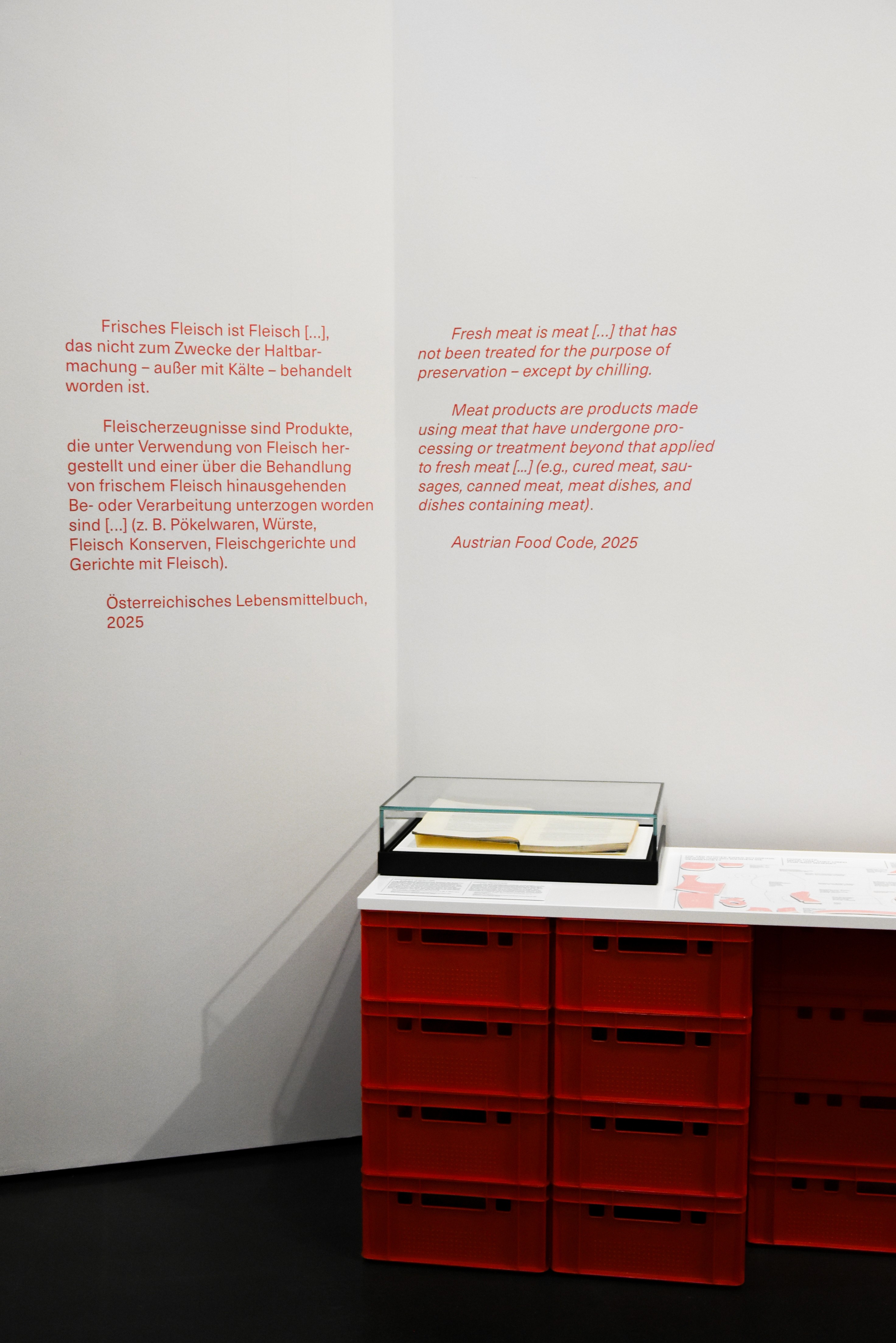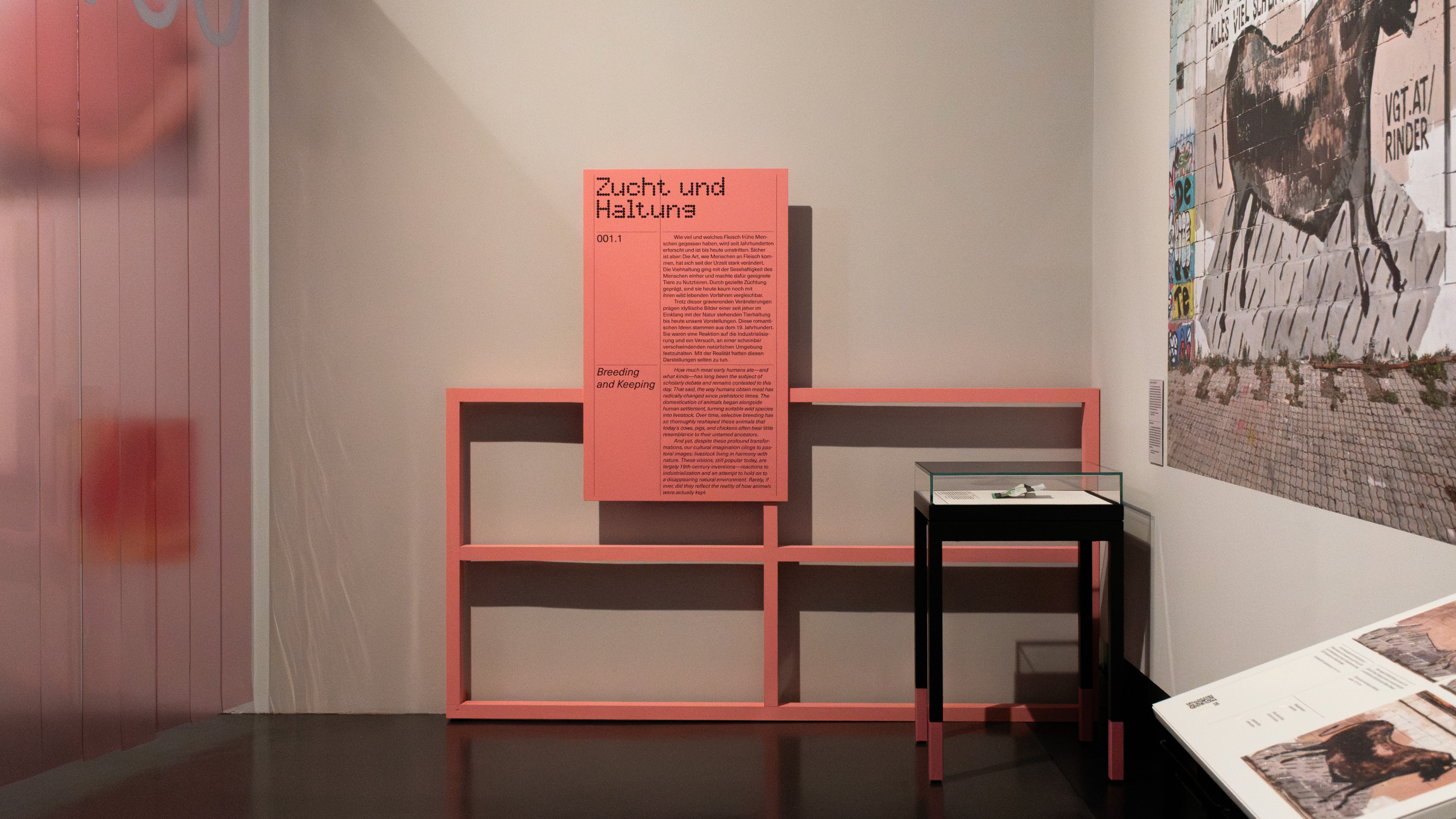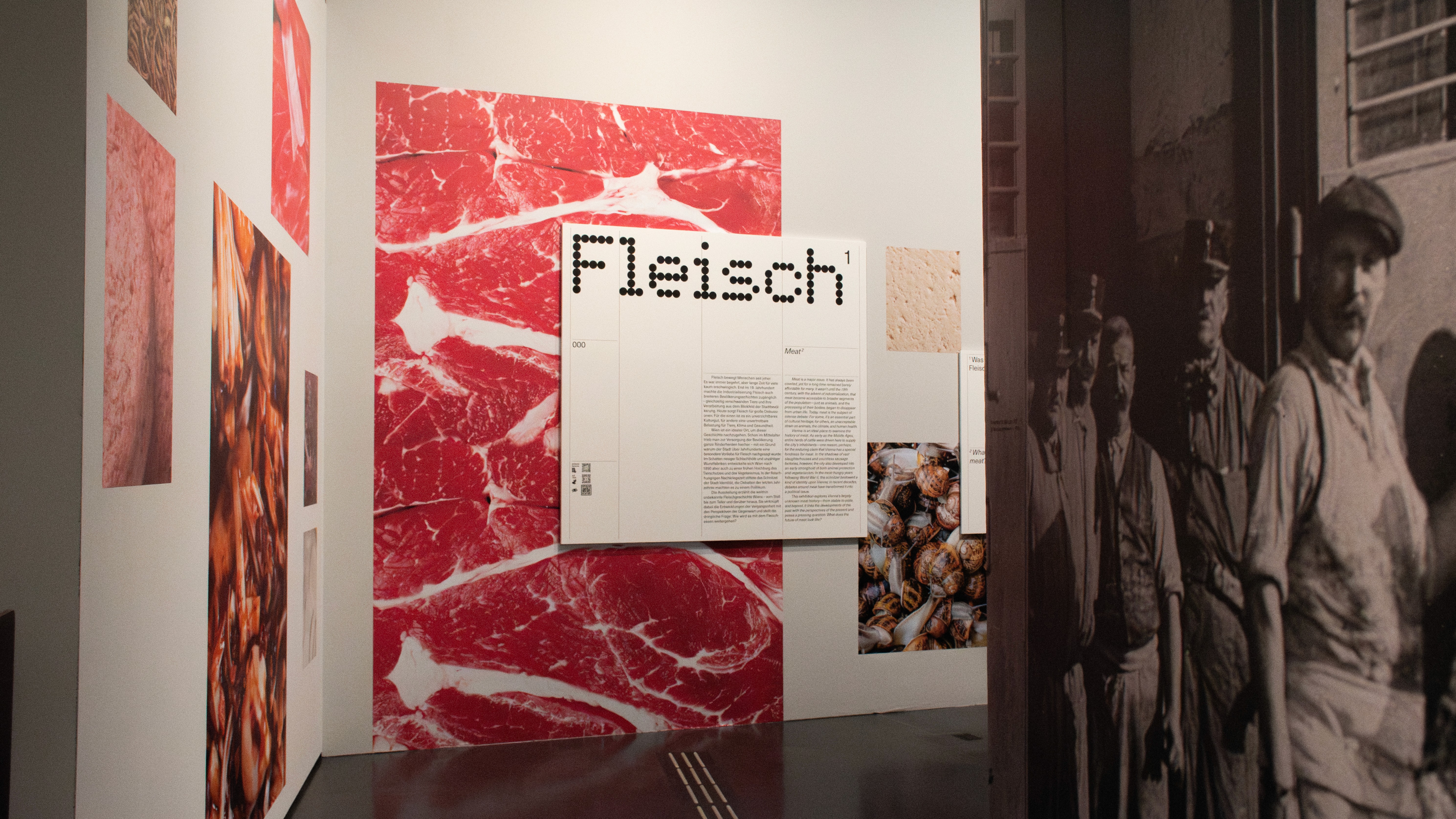 Gemeinsam mit Robert Rüf wurde das gestalterische Konzept der Ausstellung entwickelt. Großflächige Nahaufnahmen von Fleisch und Tier stehen im Zentrum – fragmentiert, lebendig und real – und kontrastieren bewusst mit einem klar strukturierten Layoutraster, das Orientierung und Systematik vermittelt.