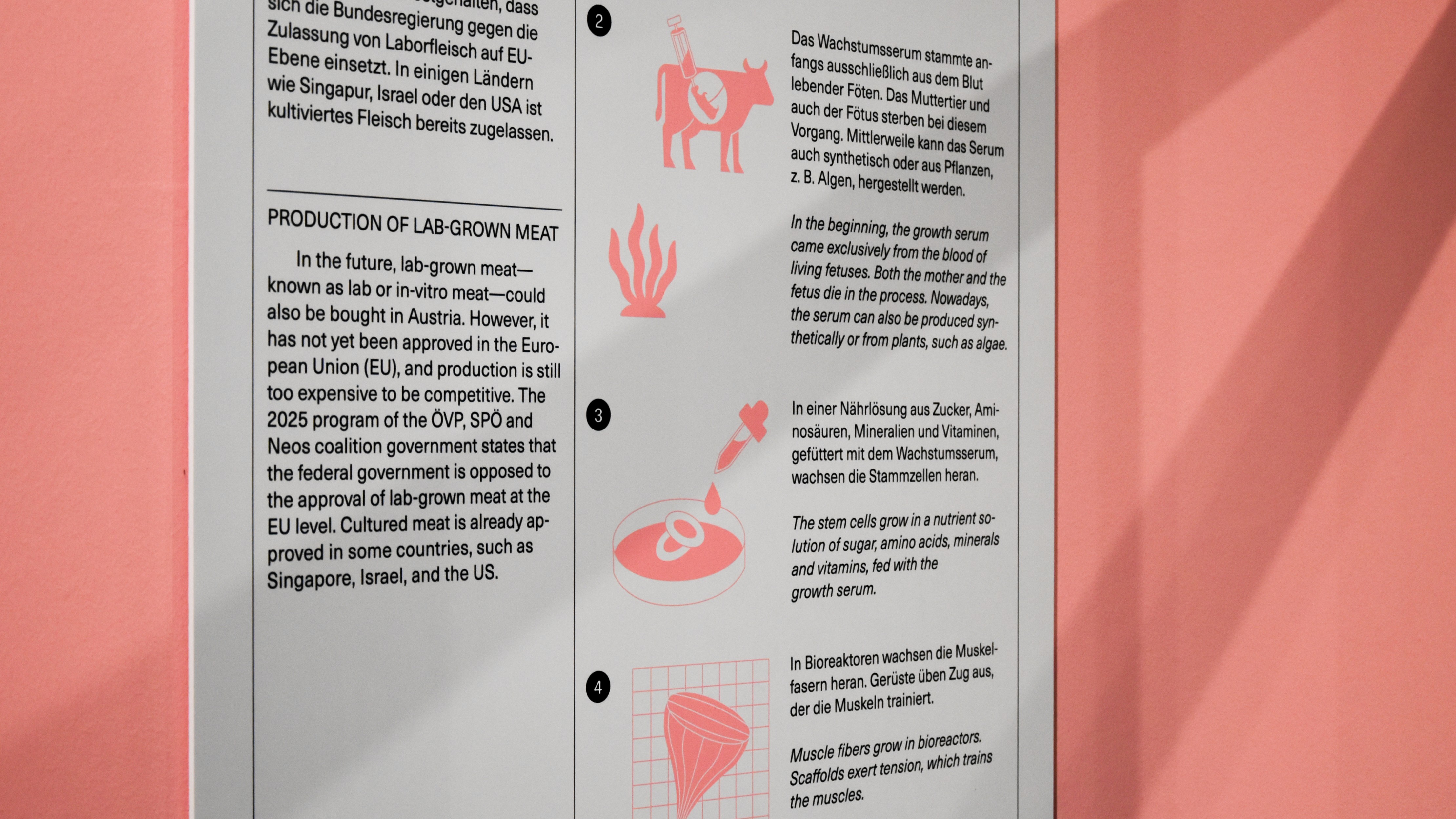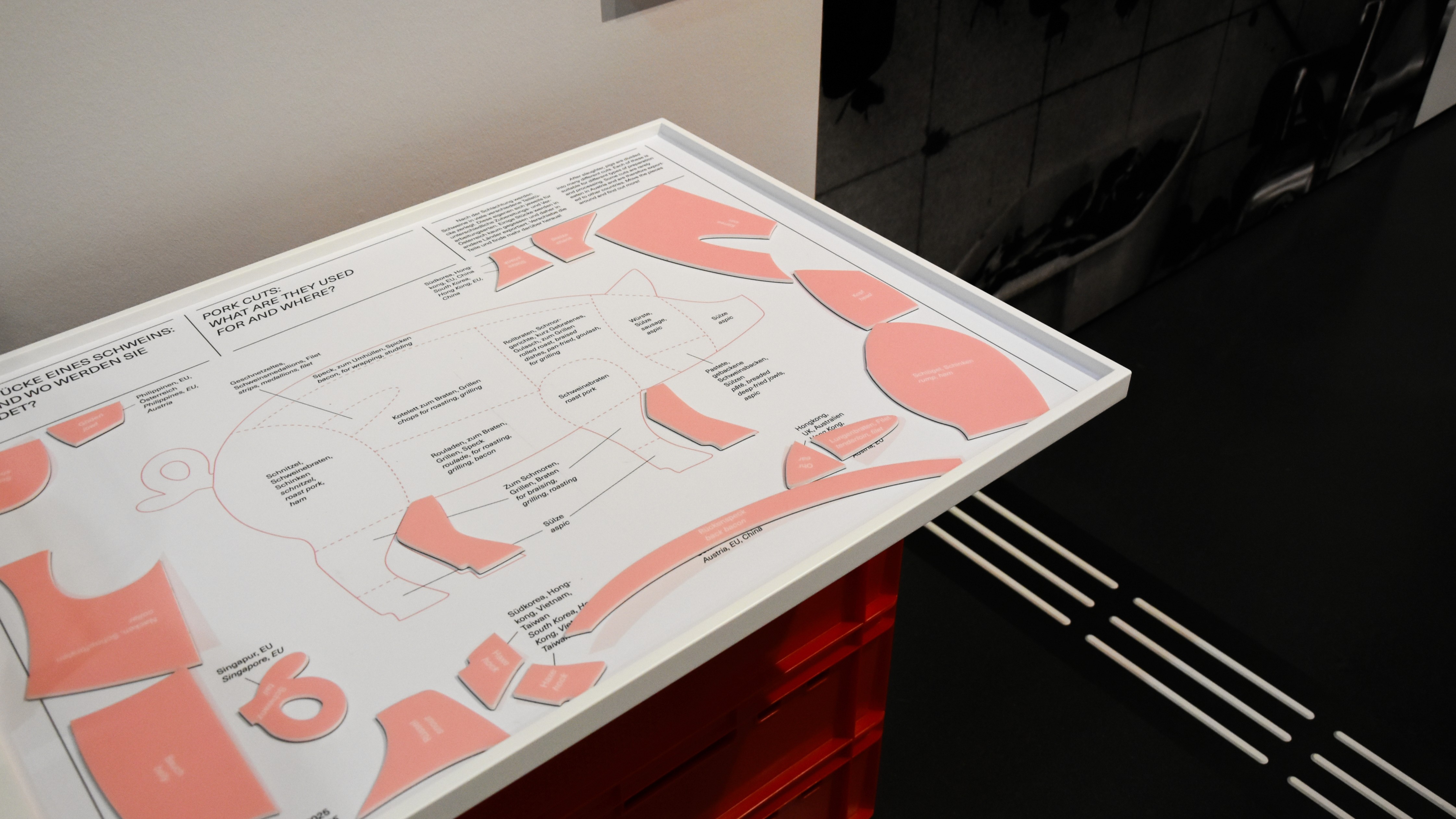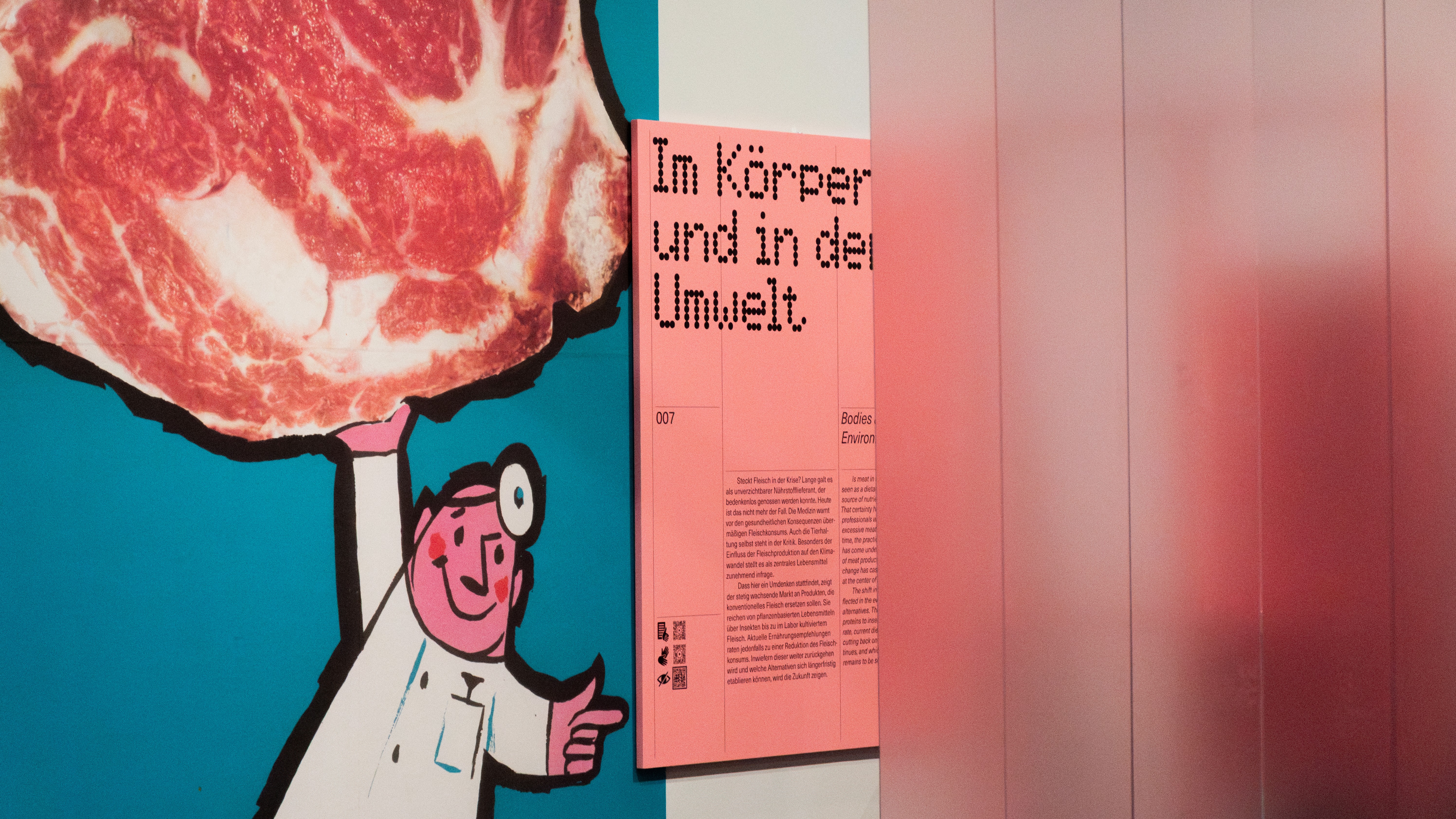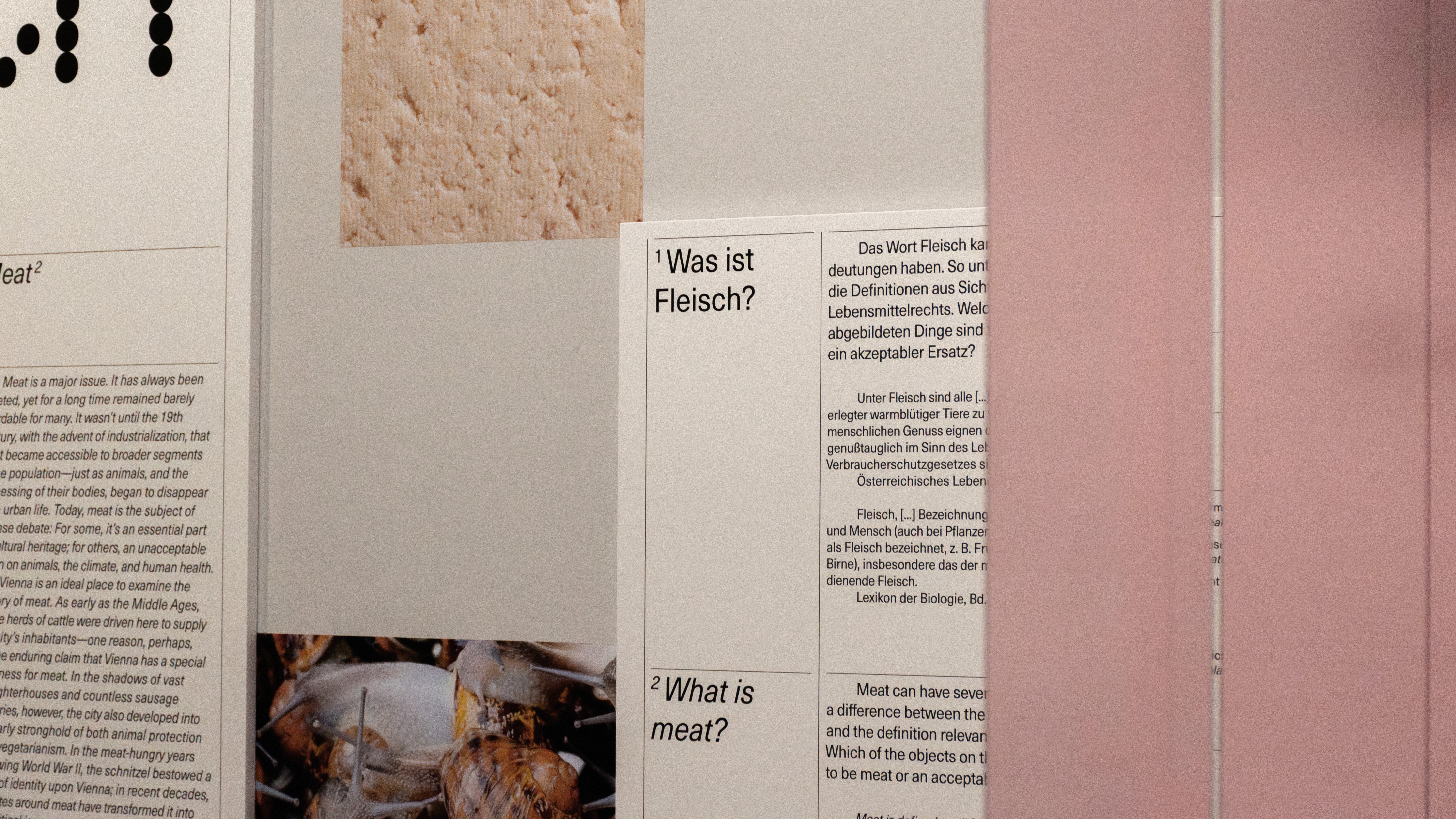 Gemeinsam mit Robert Rüf wurde das gestalterische Konzept der Ausstellung entwickelt. Großflächige Nahaufnahmen von Fleisch und Tier stehen im Zentrum – fragmentiert, lebendig und real – und kontrastieren bewusst mit einem klar strukturierten Layoutraster, das Orientierung und Systematik vermittelt.